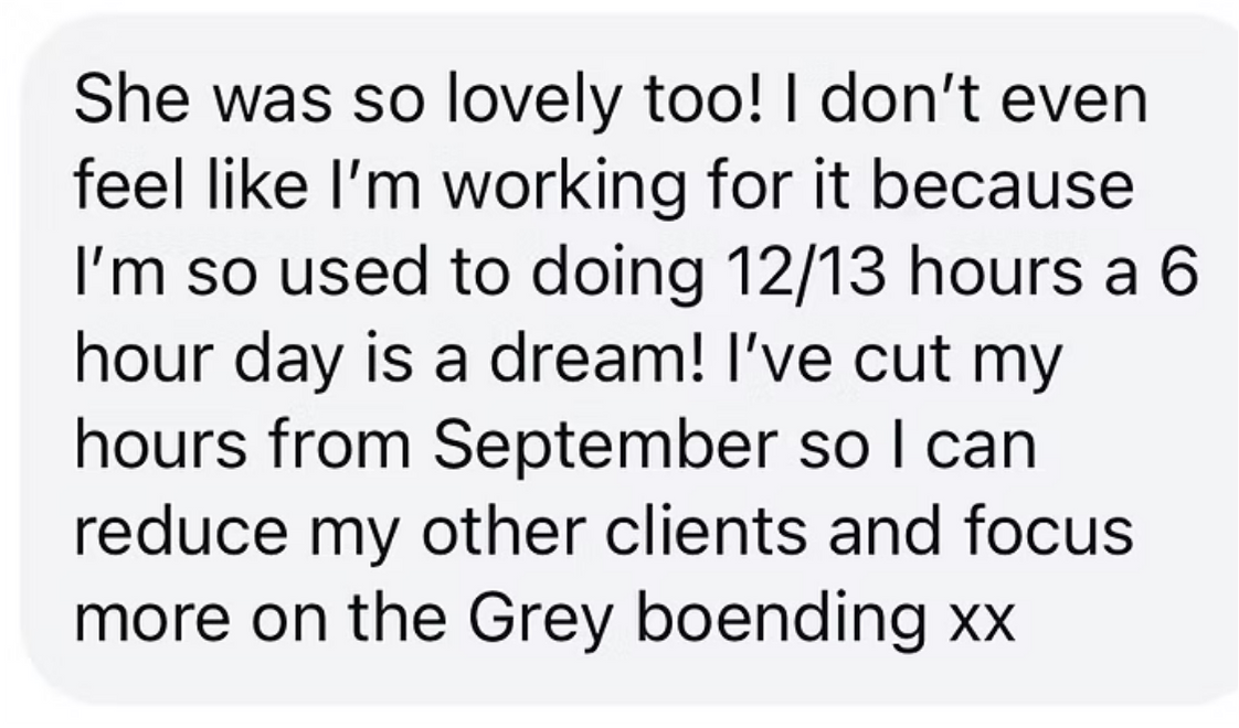 Super passionate about supporting other hairdressers and inspiring them with another way of doing things, giving them the tools to working less, earn more, and fall back in love with their career again has been so fulfilling- especially when I receive messages asking to pay off their payment plan early as they've sold so many!